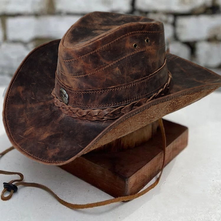 کلاه کابویی چرمی سم سام (Samsaam) مدل وسترن وینتیج کریزی هورس